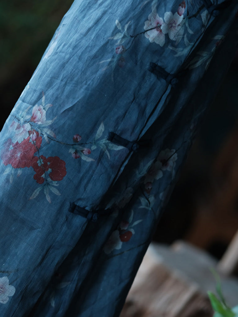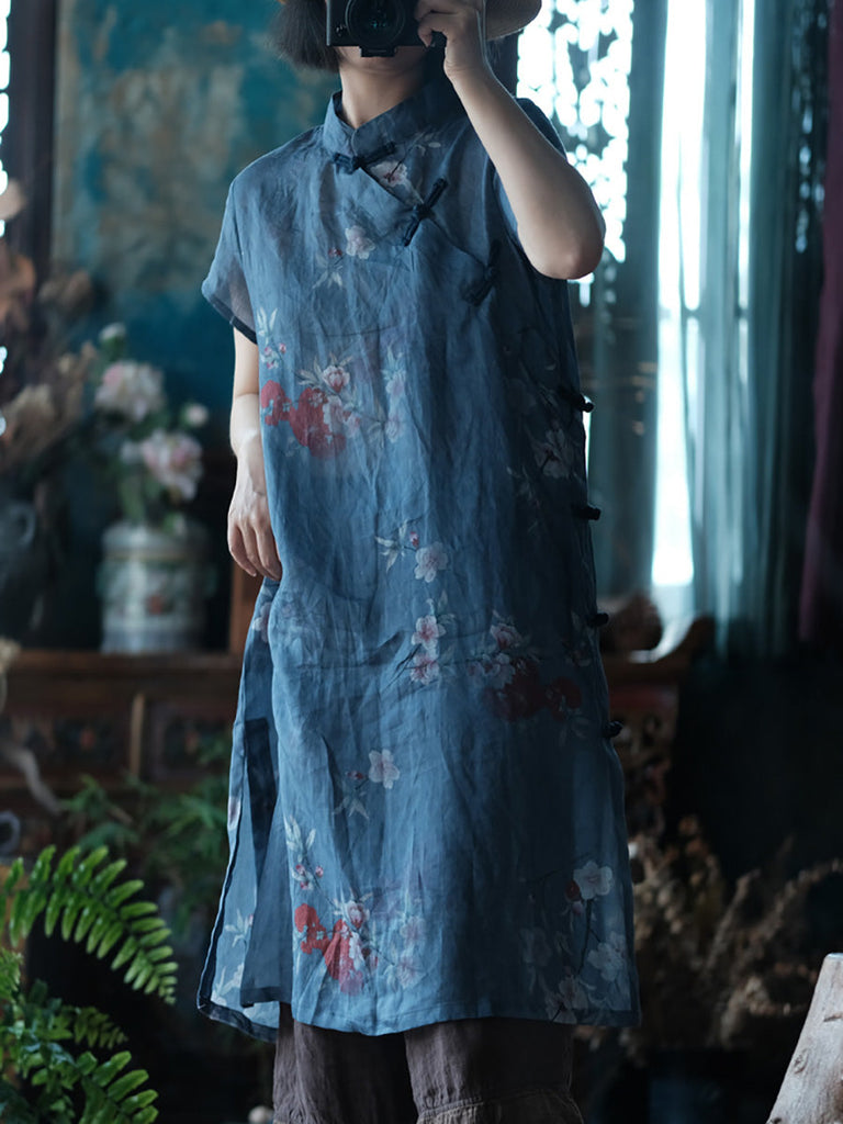 Women Summer Vintage Flower Robe Ramie Dress FD027