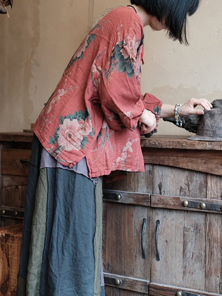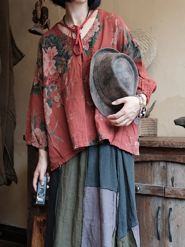 Every product is unique, just like you. If you're looking for a product that fits the mold of your life, the Women Summer Vintage Flower V-Neck 100%Cotton Shirt RR028 is for you.