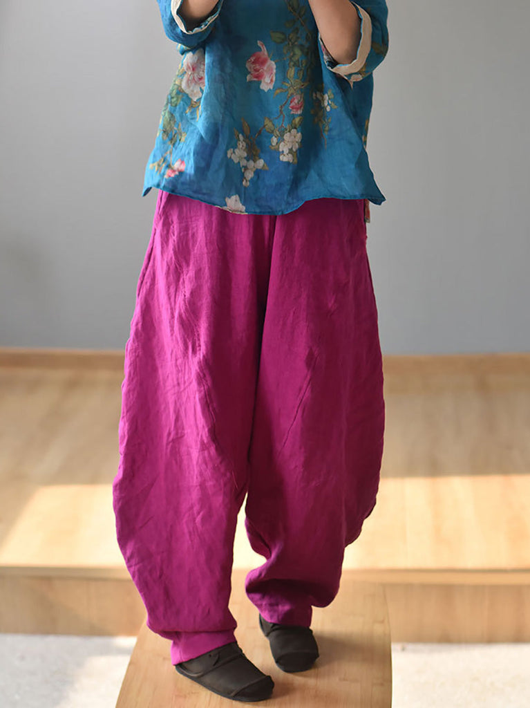 Women Summer Vintage Solid Linen Harem Pants LL029