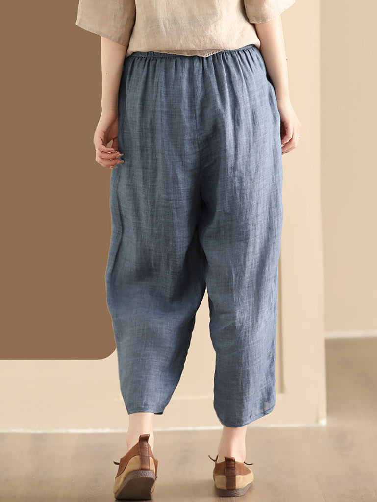 Women Summer Vintage Solid Ramie Harem Pants CX024