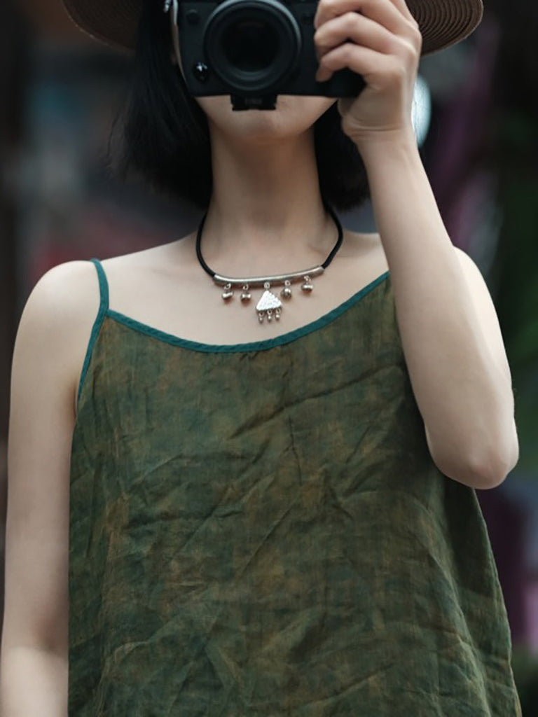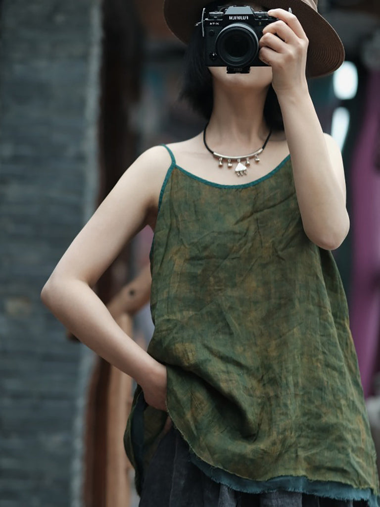 Plus Size Women Summer Vintage Tie-dye Spliced Ramie Vest LL055