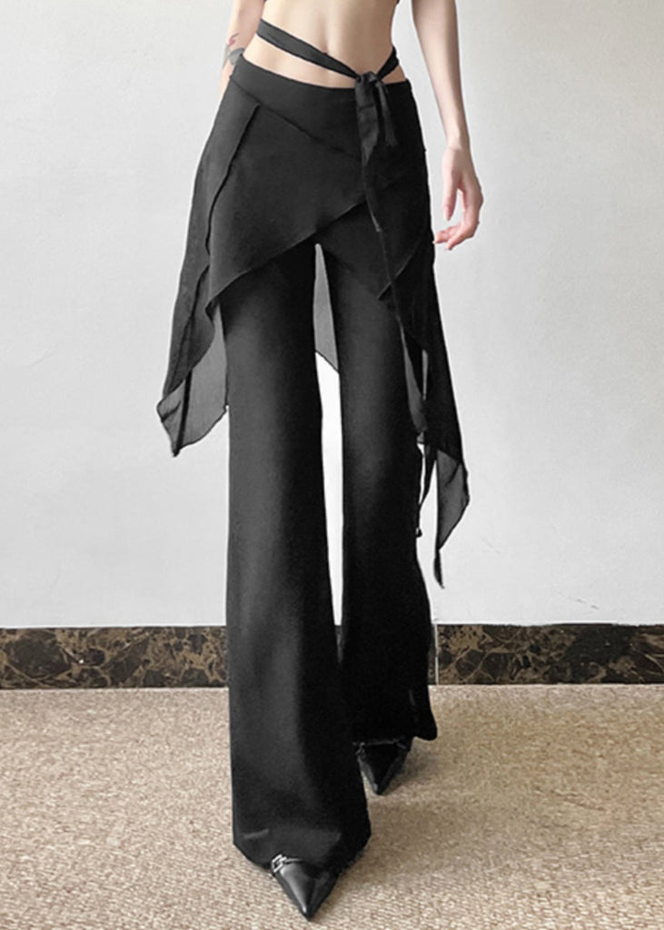 Stylish Black High Waist Patchwork Flared Trousers Summer AL1046