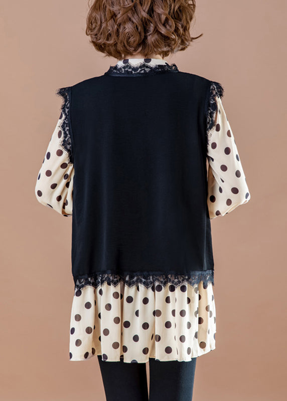 Casual Black O-Neck Waistcoat And Shirts Two Piece Set Fall