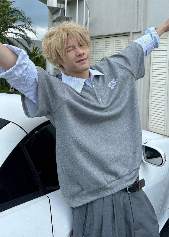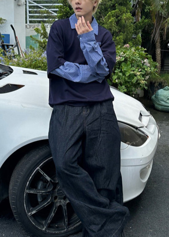 Italian Blue False Two Pieces Patchwork Cotton Mens Polo Shirt Designer Fall WJ013