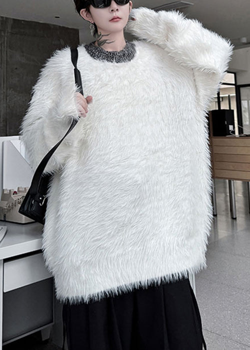 White Cozy Loose Mink Velvet Winter Mens Sweaters O Neck RC022