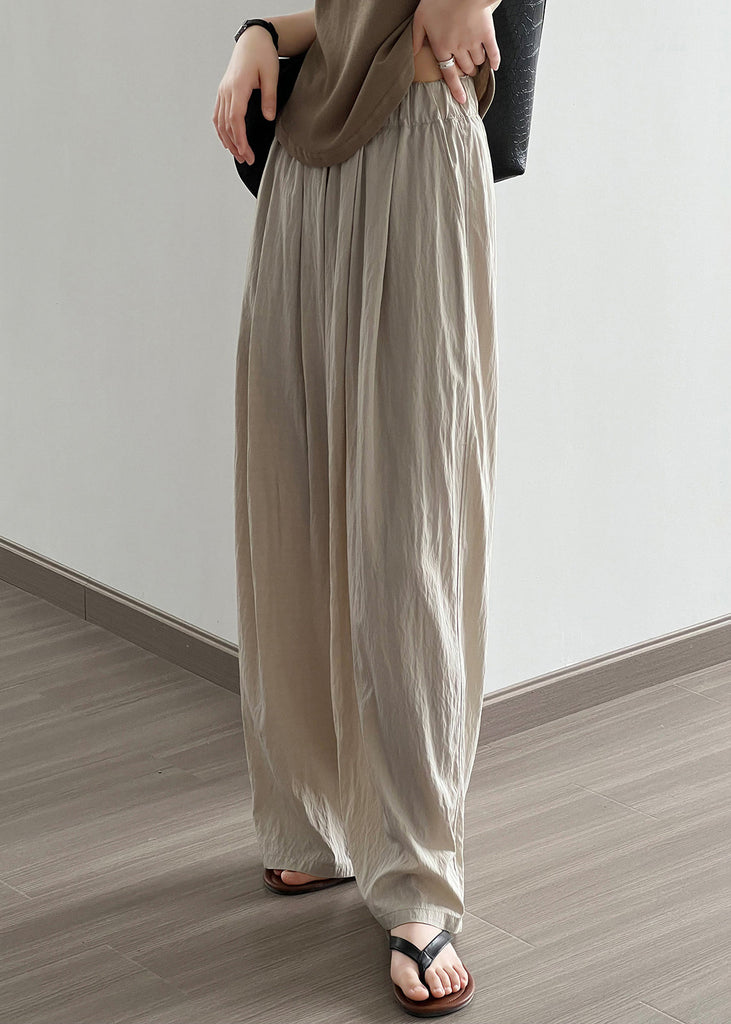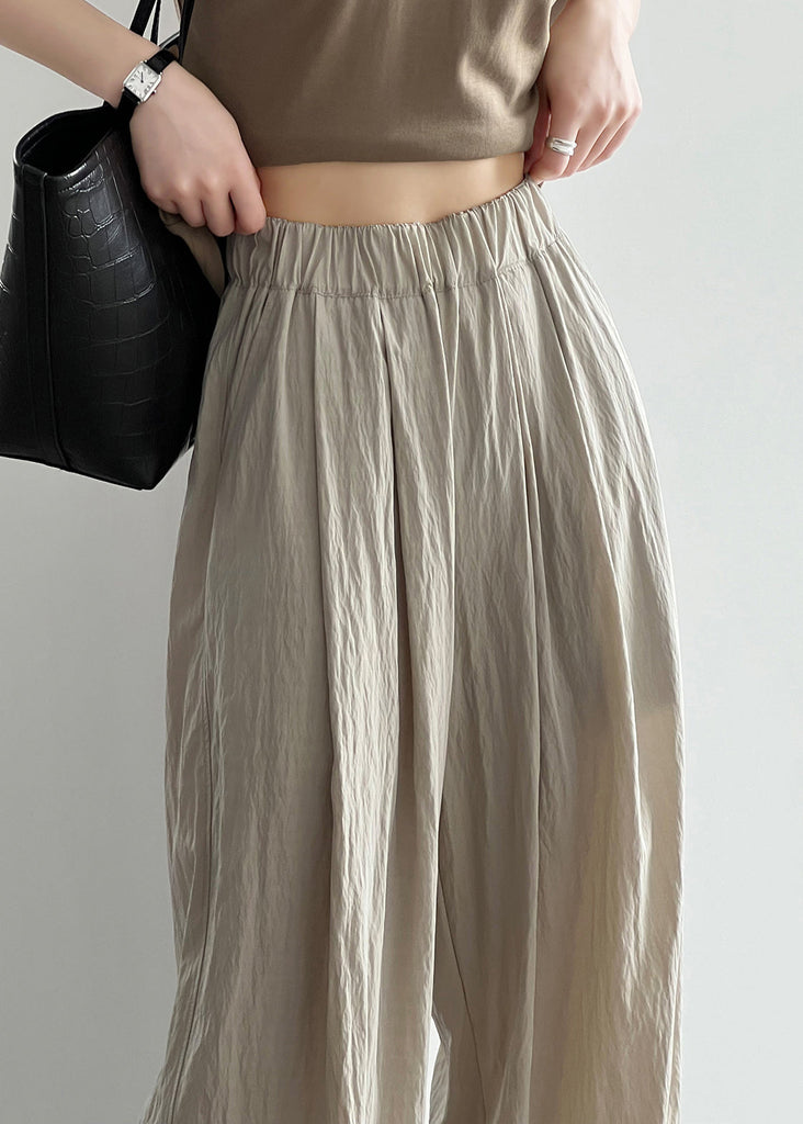 Apricot Pockets Cotton Wide Leg Pants Elastic Waist QE005