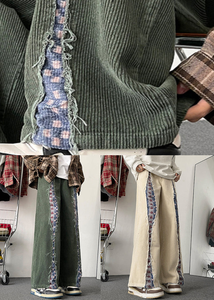 Chic Army Green Original Design Patchwork Corduroy Mens Pants Fall
