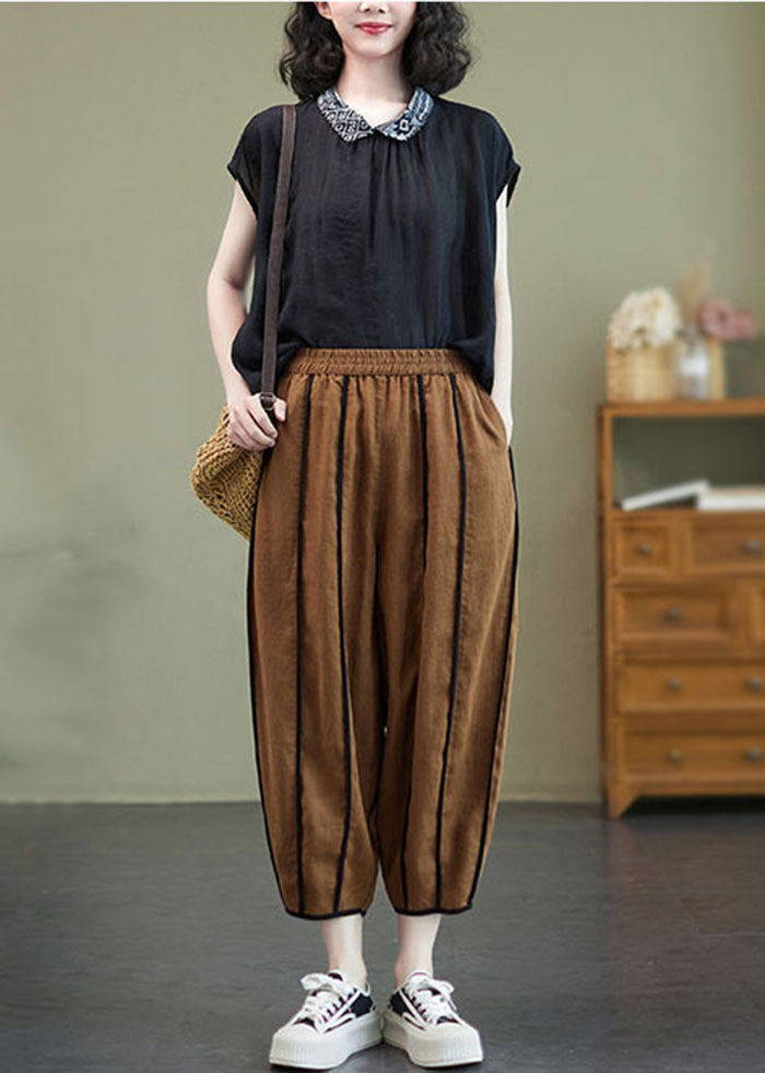 Art Coffee Elastic Waist Oversized Patchwork Linen Harem Pants Summer