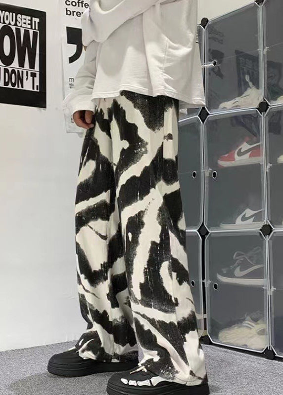 New Black Oversized Tie Dye Cotton Mens Pants Casual Clothing Spring