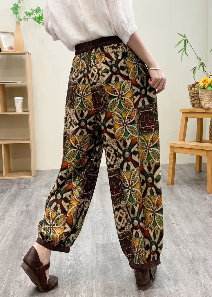 Boutique Yellow Elastic Waist Silk Linen Crop Harem Pants TQ1029