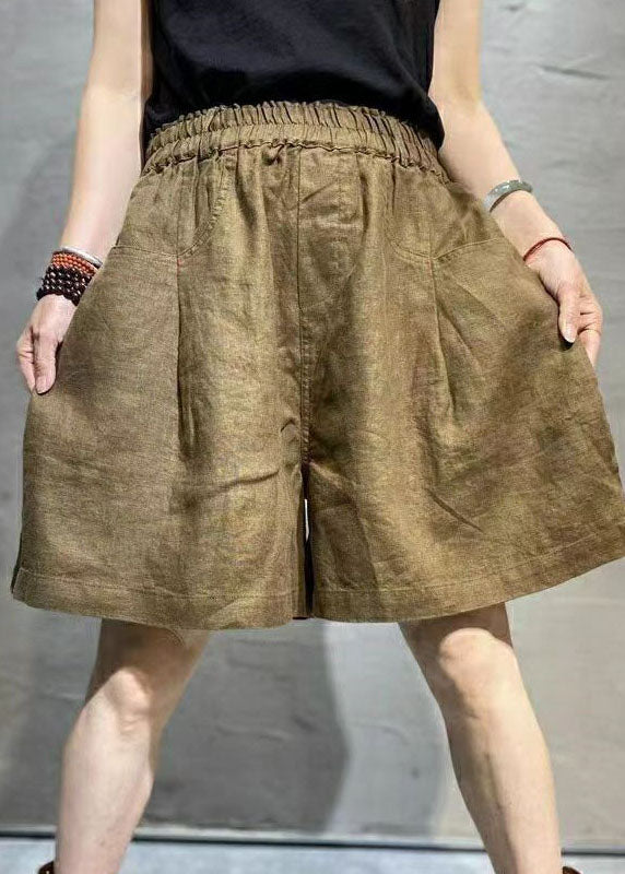 Casual Coffee Pockets Patchwork Linen Hot Pants Summer