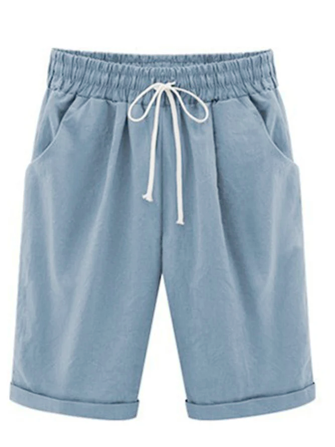 Product Title :JFN Elastic Waist Solid Causal Pockets Shorts