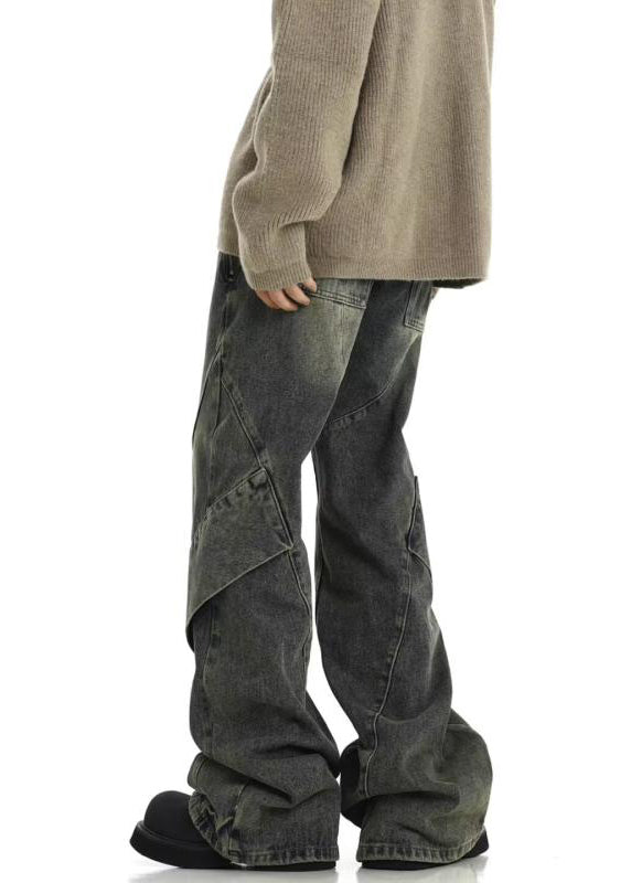Casual Denim Blue Pockets Patchwork Mens Pants SA013