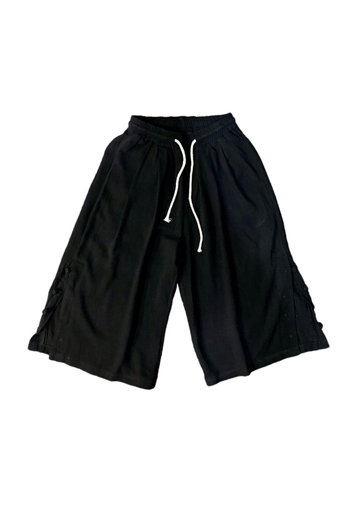 Casual Linen Pockets Button Elastic Waist Cotton Men Crop Pants Summer SA054 Men-casual-MENCP240726