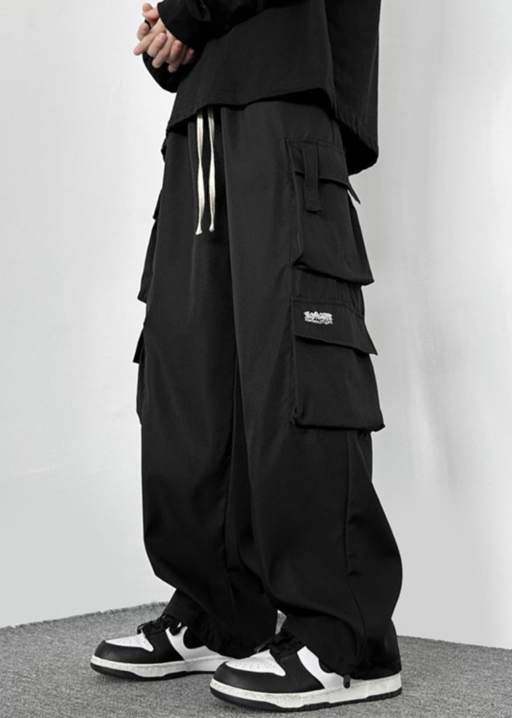 Loose Army Green Pockets Drawstring Cotton Mens Pants Casual Spring
