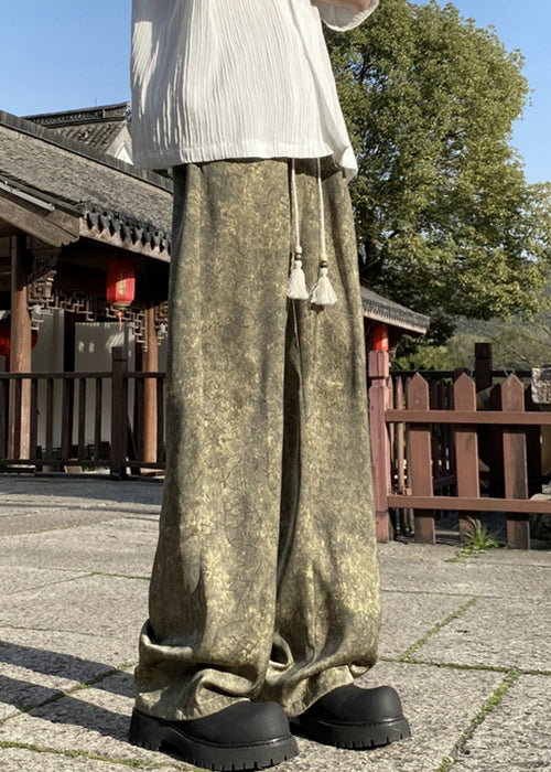 Stylish Green Print Elastic Waist Silk Men Pants Summer