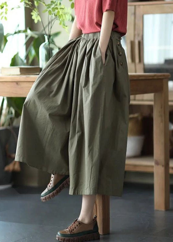 Fine Army Green Pockets Wrinkled Patchwork Linen Pants Skirt Summer