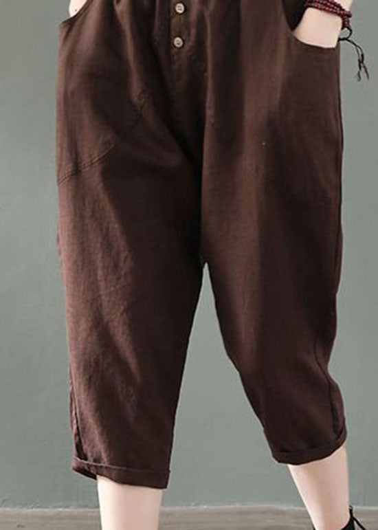 Fine Coffee Pockets Patchwork Linen Crop Pants Summer LY0589
