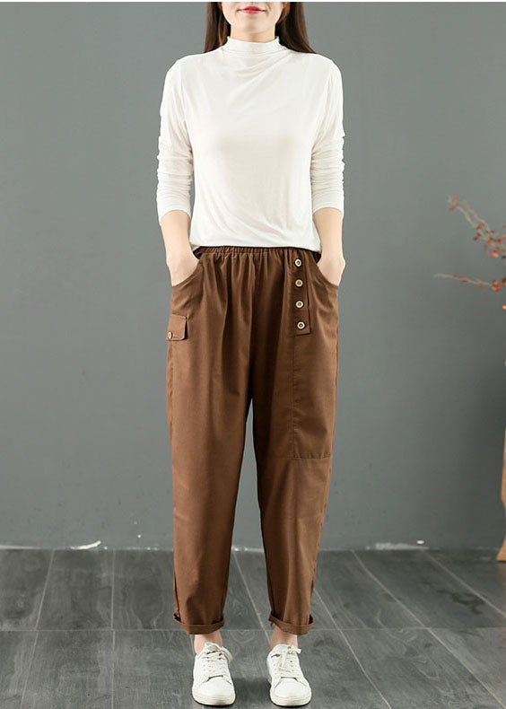 Imagine if you could be satisfied and content with your purchase. That can very much be your reality with the French Coffee Oversized Patchwork Button Cotton Harem Pants Summer AC2048.