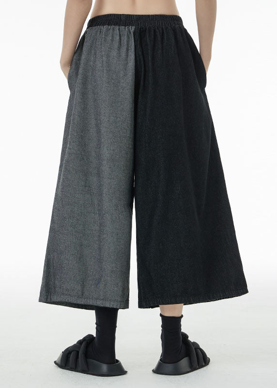 Loose Black Asymmetrical Print Cotton Wide Leg Pants Summer
