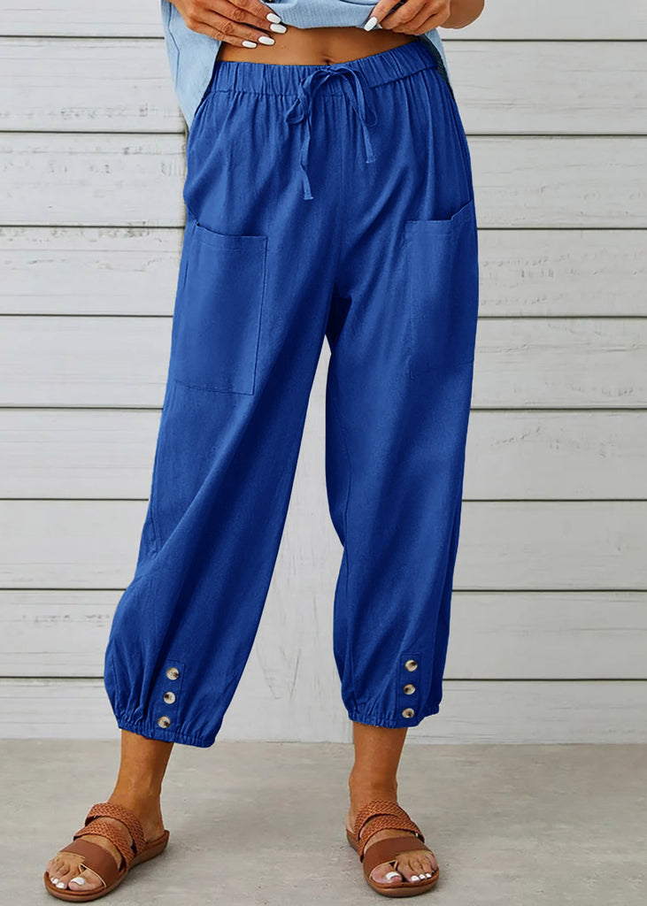 Every product is unique, just like you. If you're looking for a product that fits the mold of your life, the Loose Dark Gray Pockets Elastic Waist Cotton Crop Pants Summer QE048 is for you.