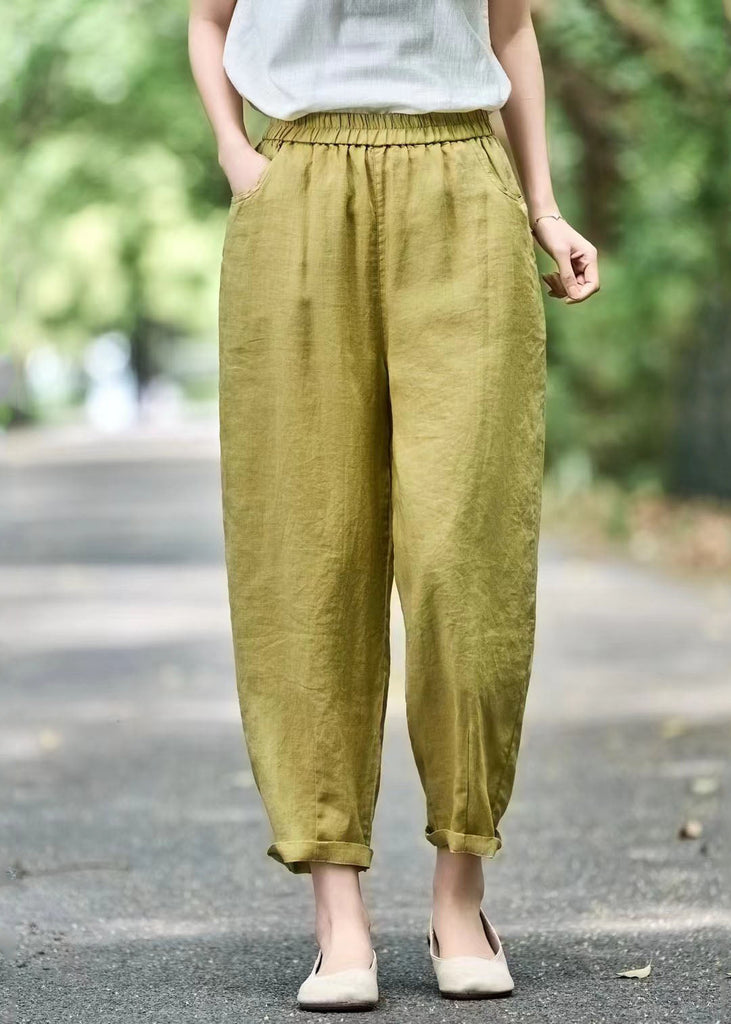 Modern Pants Linen Oversized Green Grass Elastic Waist Harem