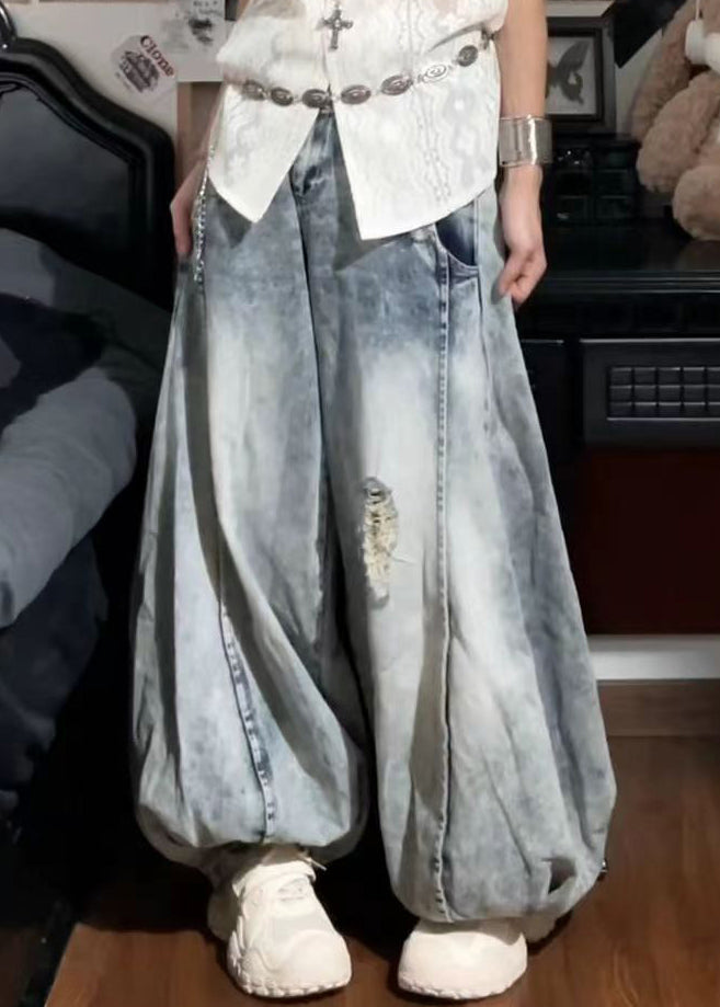 New Blue Hole Pockets High Waist Denim Lantern Pants Fall QF054