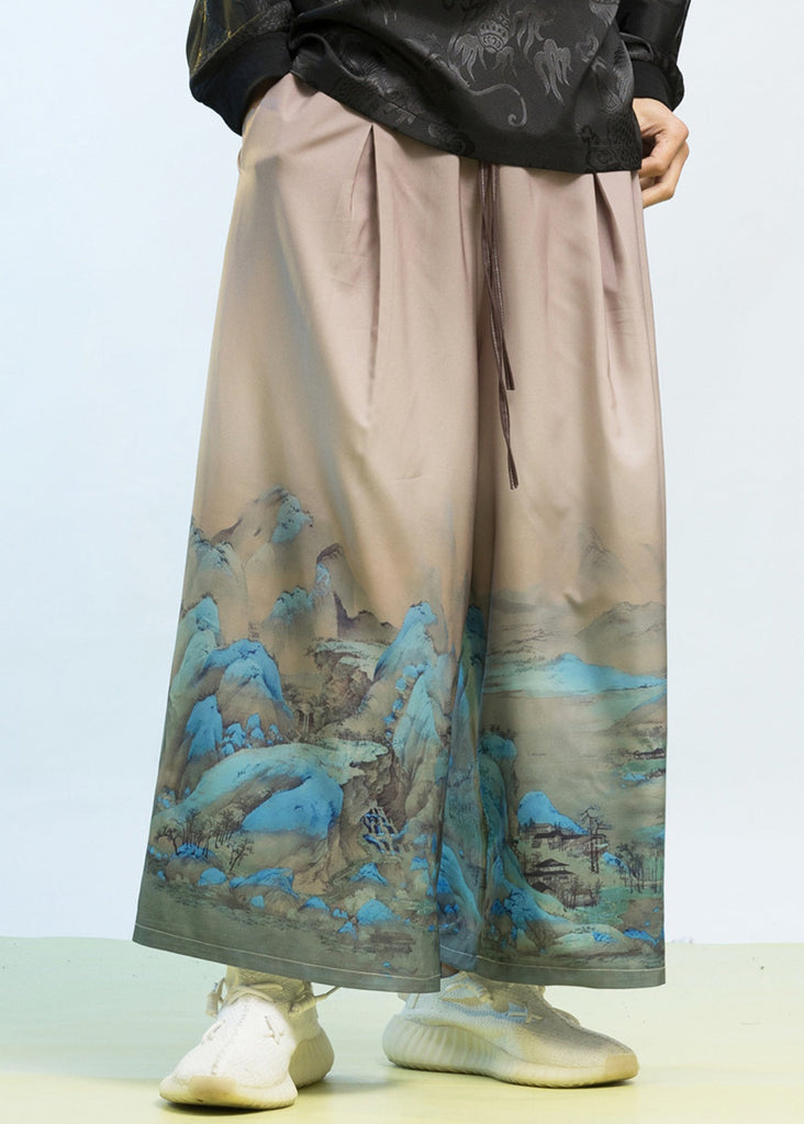New Chinese Style Thousand Mile Jiangshan Printed Men Wide Leg Pants SA008