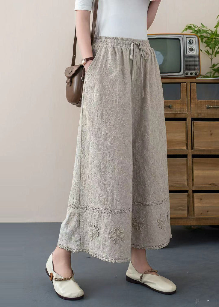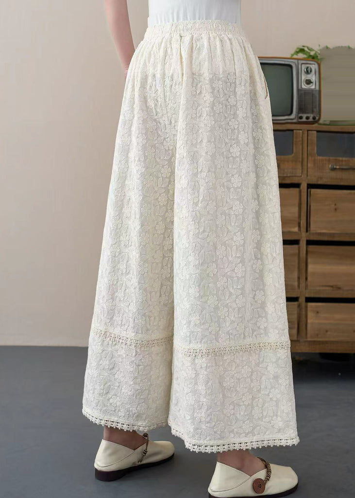 Pants Embroidered Cotton Floral Summer White Crop Trousers DIY