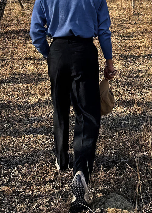 French Khaki Pockets High Waist Solid Spandex Mens Pants Fall
