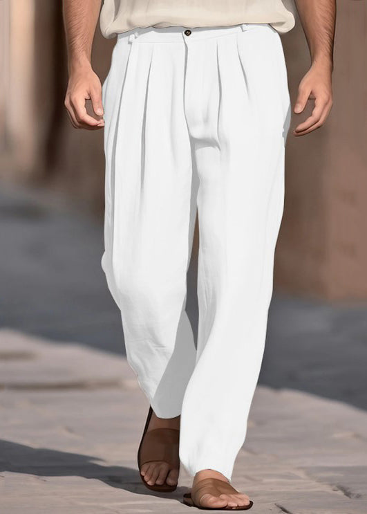 Boutique Khaki Wrinkled Solid High Waist Cotton Men Pants Summer