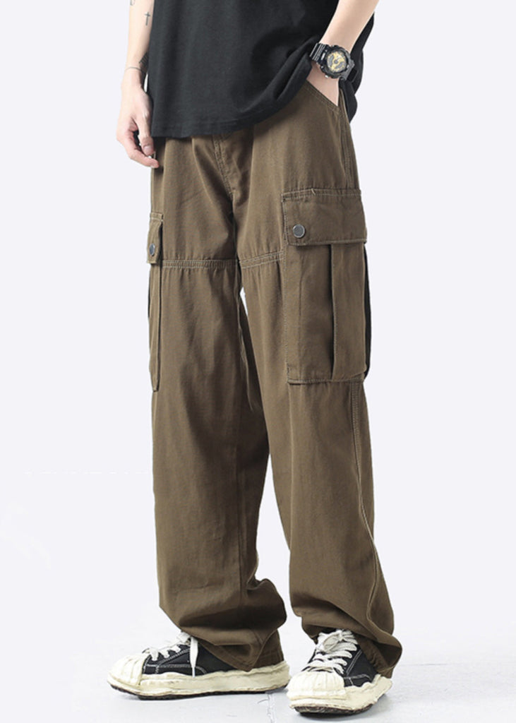 Waist Mens Crop High Pockets Grey Light Cotton Pants Casual