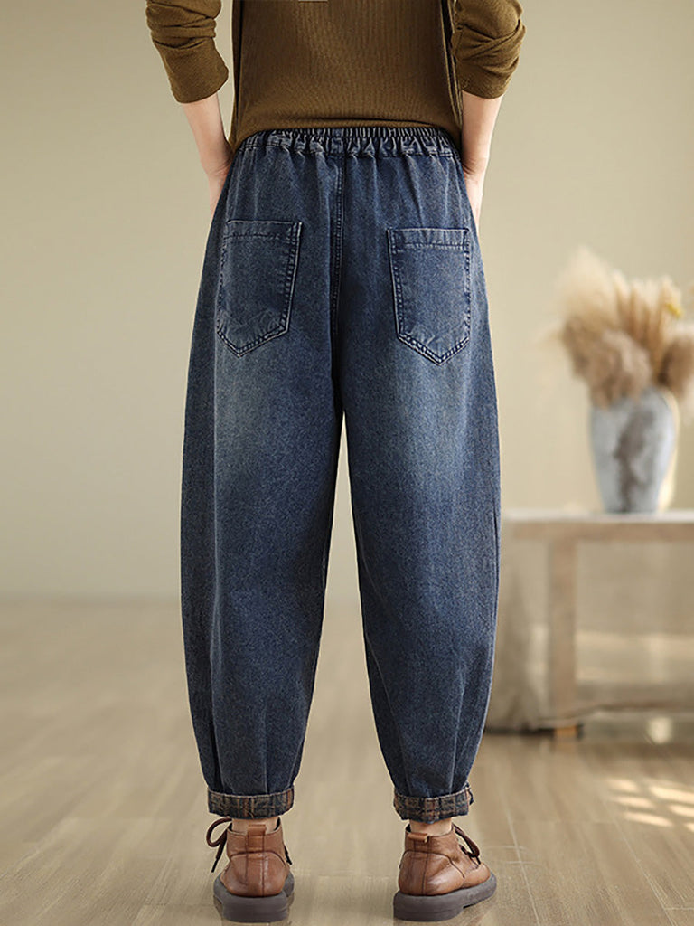 Women Autumn Artsy Butterfly Embroidery Denim Harem Pants AI1078