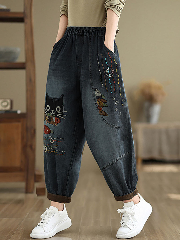 Imagine if you could be satisfied and content with your purchase. That can very much be your reality with the Women Autumn Casual Cat Patch Spliced Denim Harem Pants AV1004.