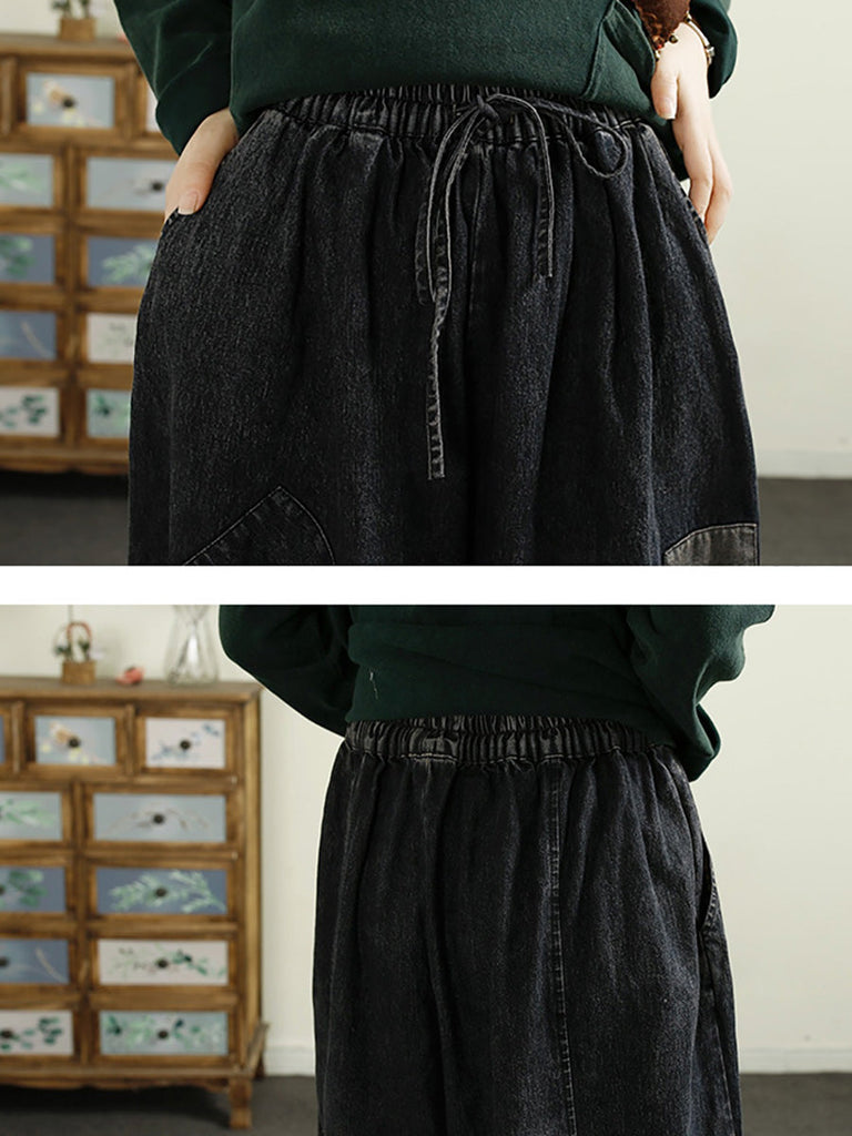 Women Autumn Patch Spliced Denim Harem Pants AI1053