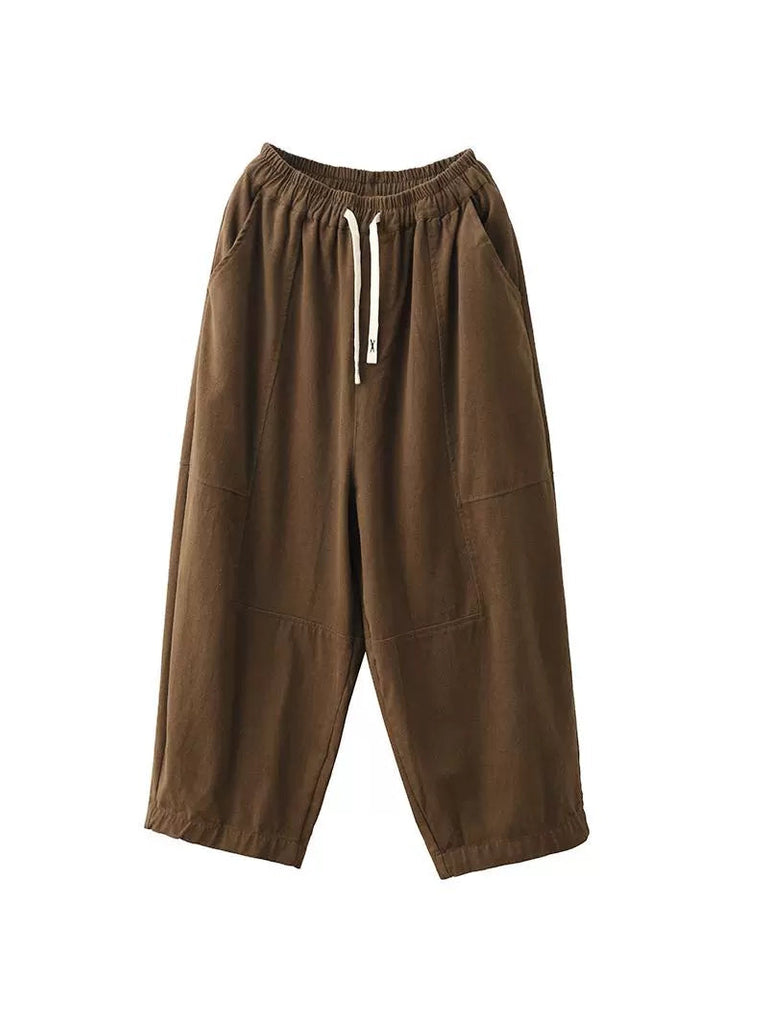 Women Autumn Retro Cotton Spliced Loose Solid Harem Pants BA1034