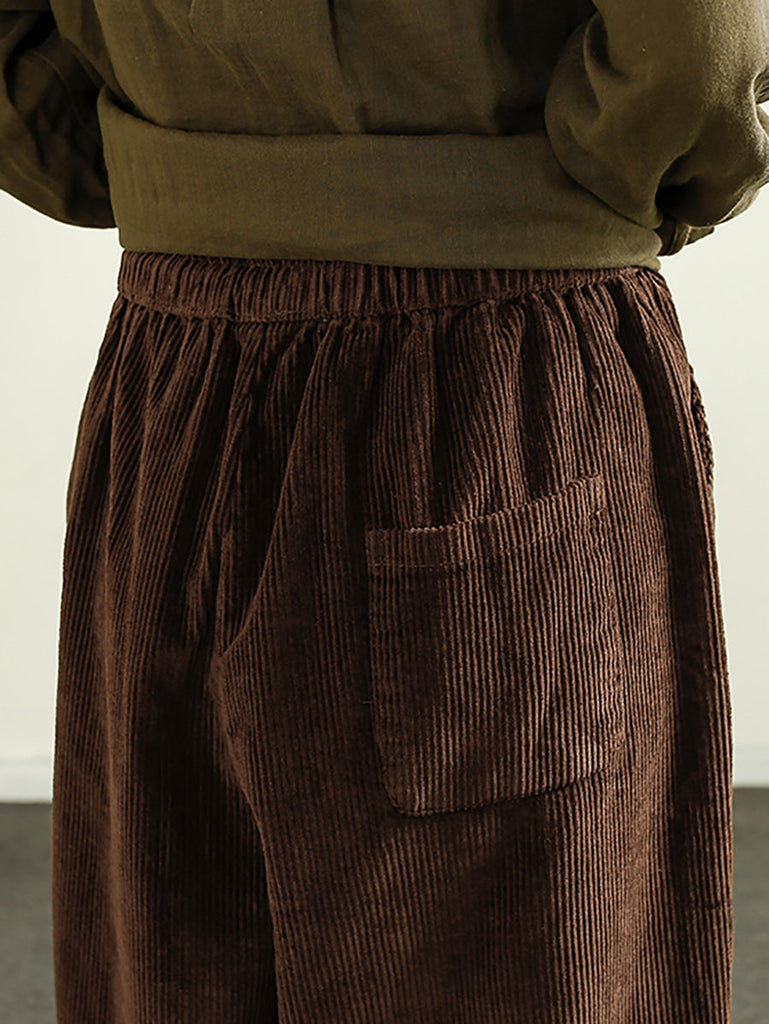 Women Autumn Solid Corduroy Spliced Cotton Harem Pants AI1047