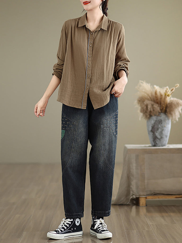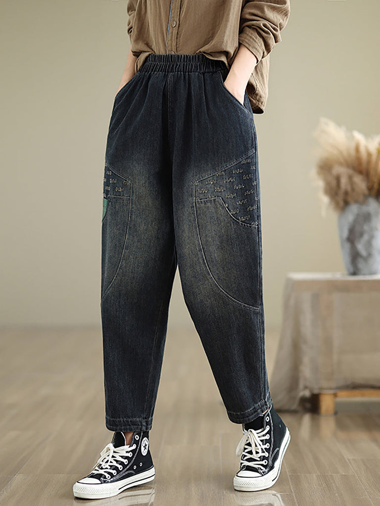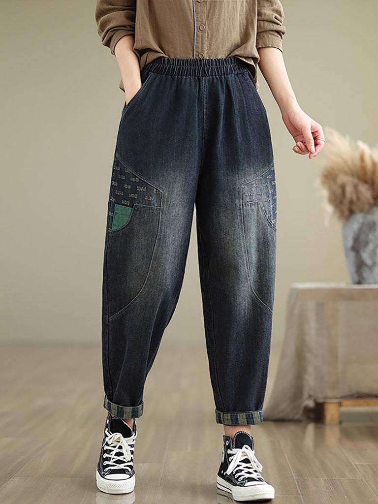 Women Autumn Spliced Casual Loose Denim Harem Pants AT1064