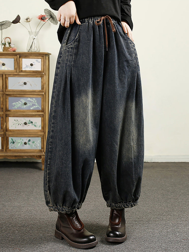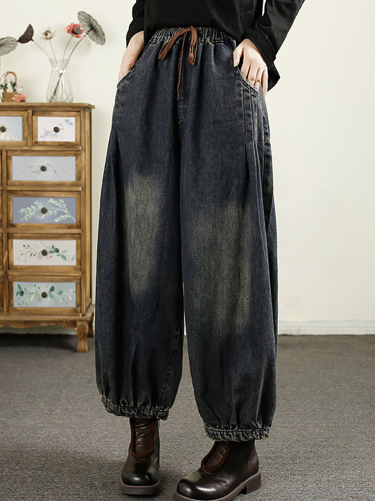 Women Autumn Vintage Denim Loose Harem Pants AK1043