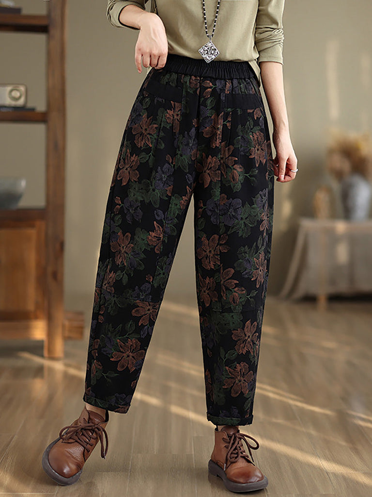 Women Autumn Vintage Flower Cotton Harem Pants AI1038