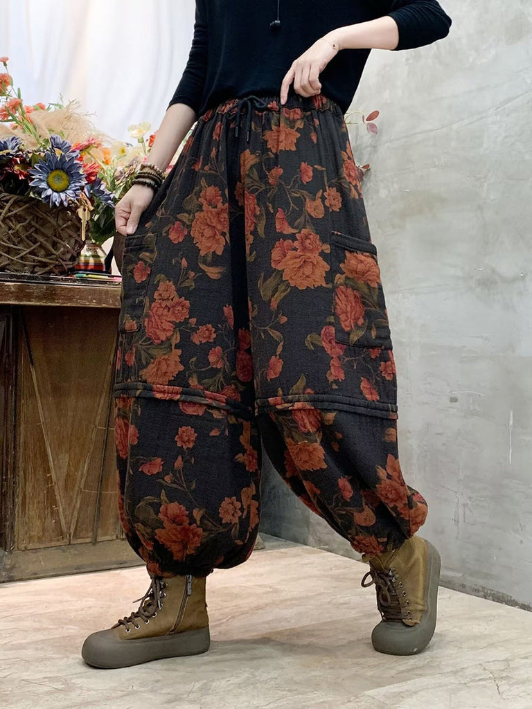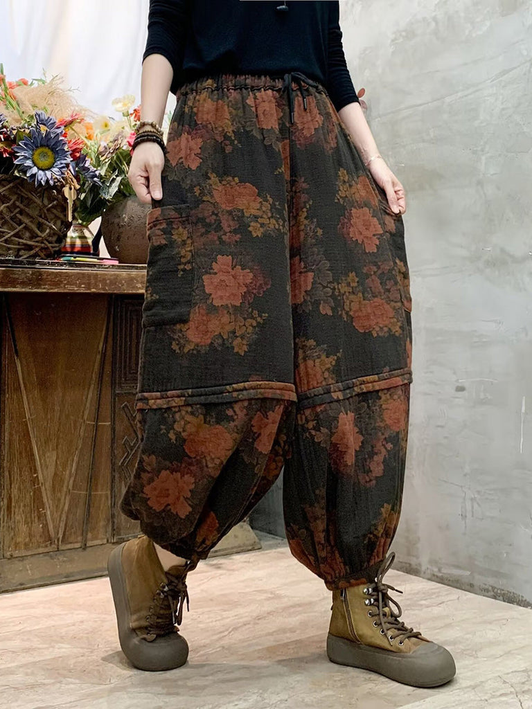 Women Autumn Vintage Flower Spliced Cotton Harem Pants AH1004