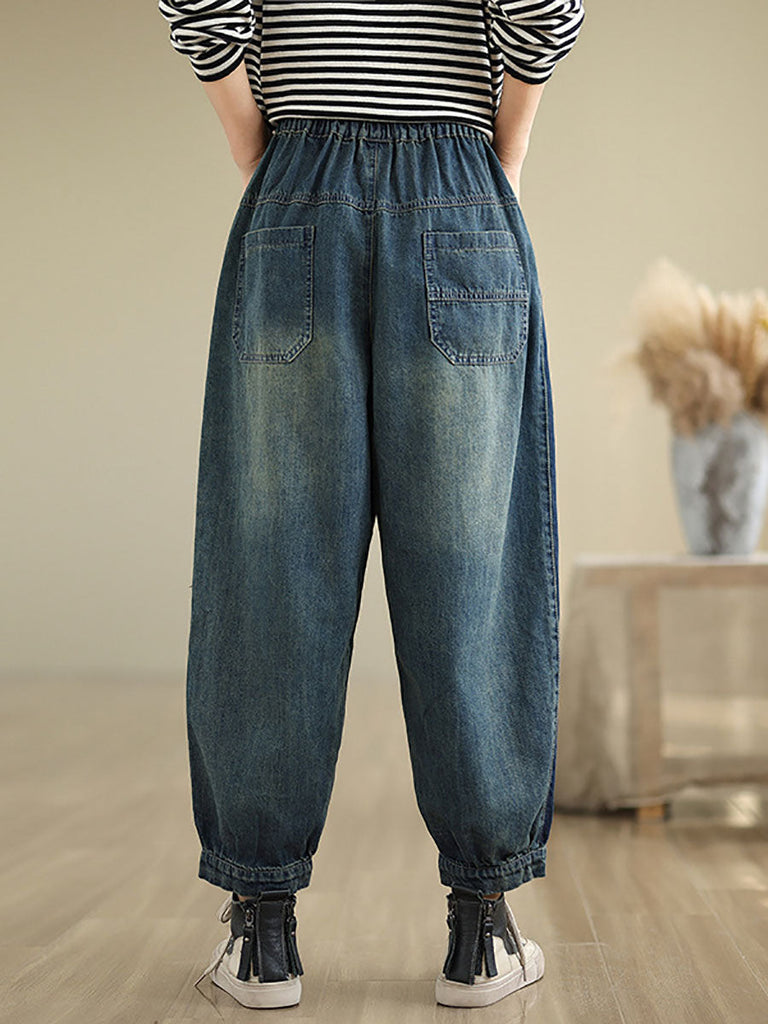 Women Casual Pockets Washed Denim Harem Pants AT1003