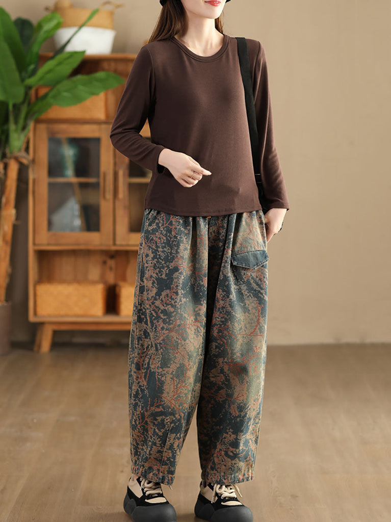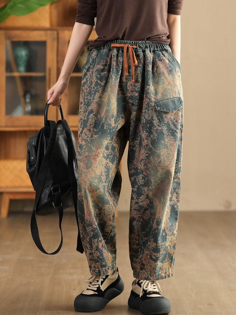 Women Casual Tie-dye Autumn Strap Denim Harem Pants AI1028