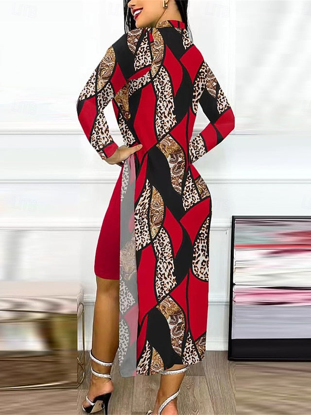 Dresses Type: Casual Dress, Fabric: Polyester, Gender: Women's, Design: Print, Occasion: Outdoor, Daily, Style: Casual, Fit Type: Regular Fit, Dress Length Type: Midi Dress, Neckline: Stand Collar, Sleeve Length: Long Sleeve, Elasticity: Micro-elastic, Look After Me: Hand wash, Machine wash, Pattern: Leopard, Color Block, Season: Fall, Summer, Spring,