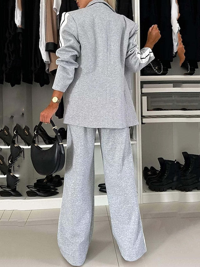 Gender: Women's, Style: Formal, Fashion, Occasion: Business, Work, Tops Type: Blazer Suits, Fabric: Polyester, Sleeve Length: Long Sleeve, Elasticity: Micro-elastic, Pattern: Solid Color, Season: Spring & Fall, Details: Top, Bottom,