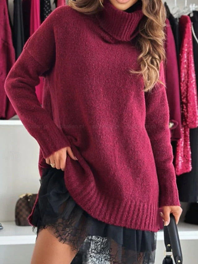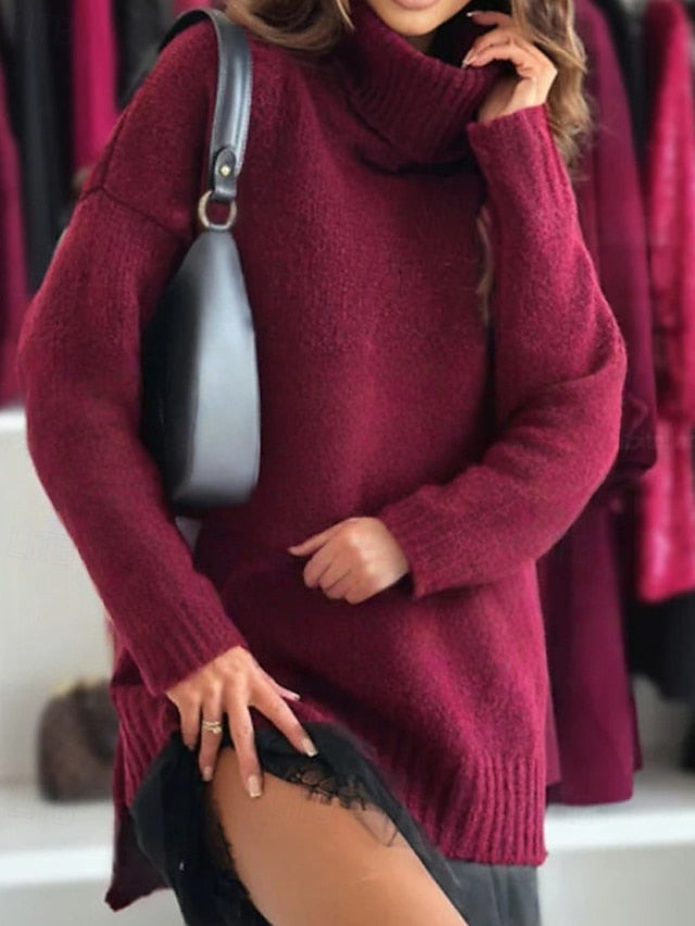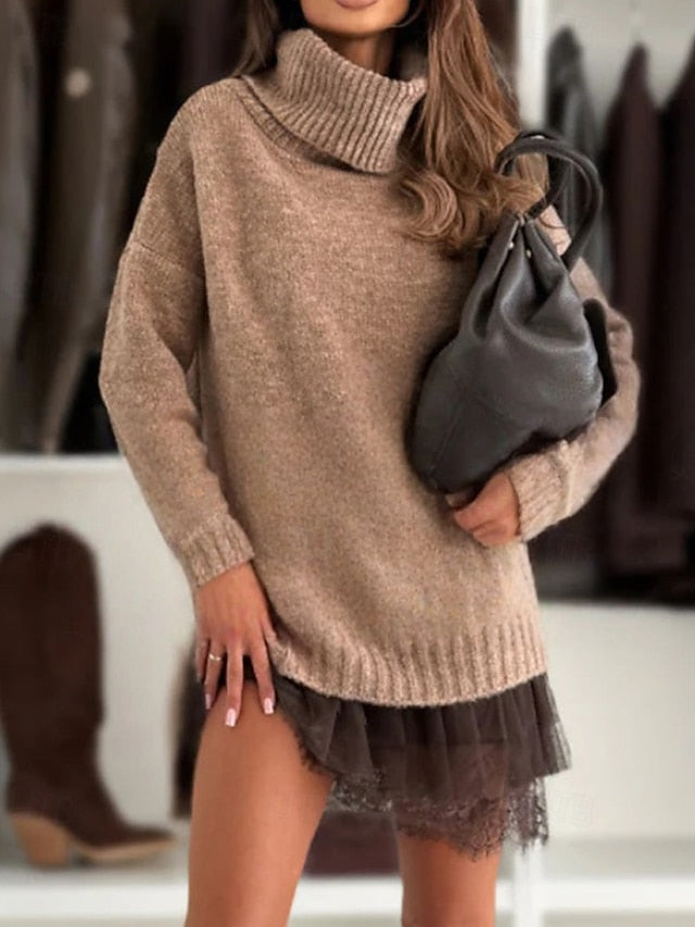 Dresses Type: Dress Set, Sweater Dress, Fabric: Polyester, Gender: Women's, Design: Knit, Lace, Occasion: Daily, Going out, Outdoor, Weekend, Style: Modern, Fit Type: Loose Fit, Dress Length Type: Mini Dress, Neckline: Turtleneck, Sleeve Length: Long Sleeve, Elasticity: Inelastic, Look After Me: Hand wash, Machine wash, Pattern: Plain, Season: Winter, Fall,