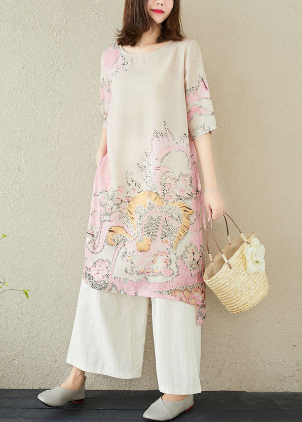 The Boho Blue Print O-Neck Side Open Linen Two Piece Set Women Clothing Summer LY1513 destined to impress, and priced at only $85.00, for a limited time.