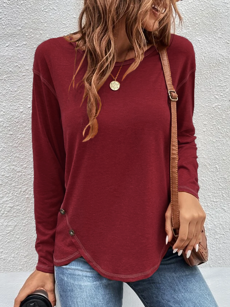The Casual Plain Autumn Cross Neck Micro-Elasticity Jersey Standard Regular H-Line Tunic T-Shirt for Women QAL47 destined to impress, and priced at only $16.31, for a limited time.