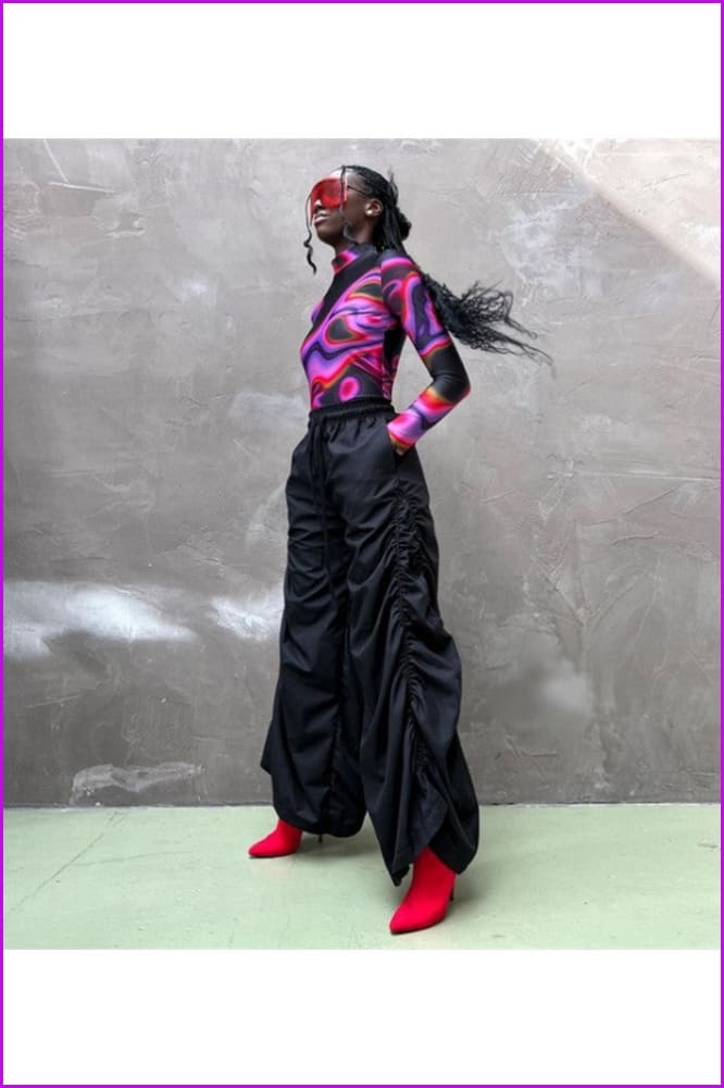 Designer Solid Ruched Wide Leg Street Long Trousers Women