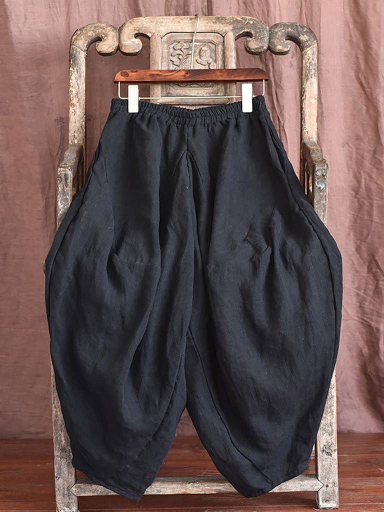Women Autumn Rero Solid Linen Loos Bloomers AH1052